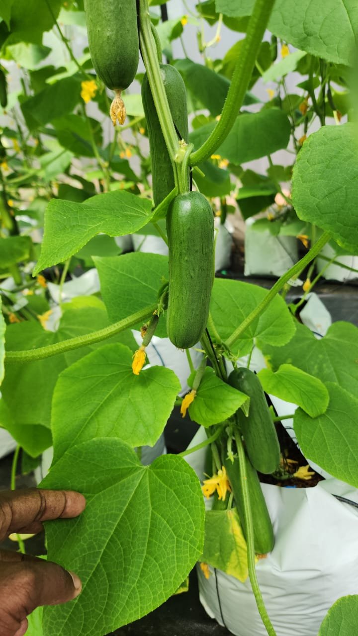 Our bitter gourd is grown in a protected greenhouse environment to ensure optimal quality and yield. The pollination process is naturally supported by fruit flies